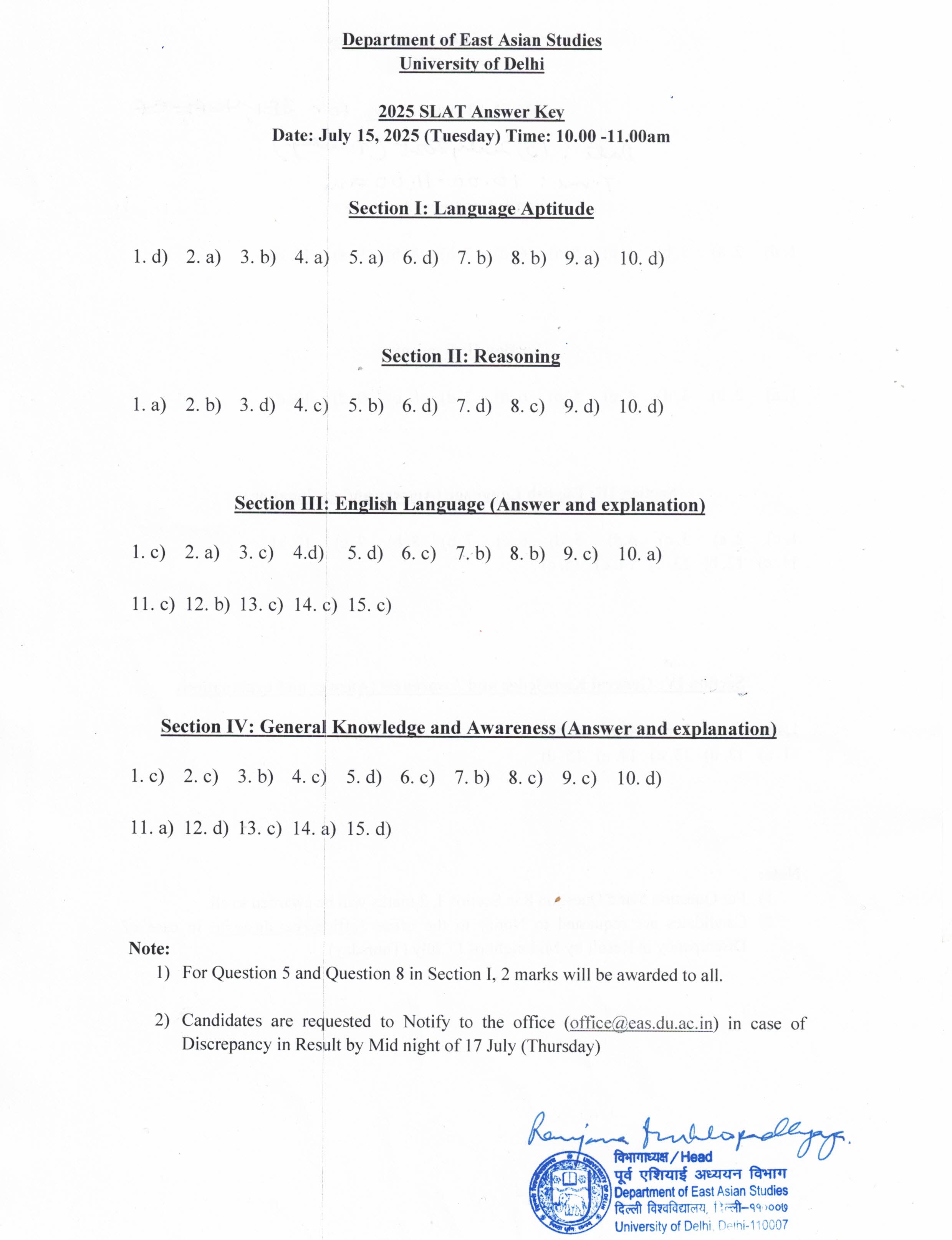 SLAT 2025 ANSWER KEY
